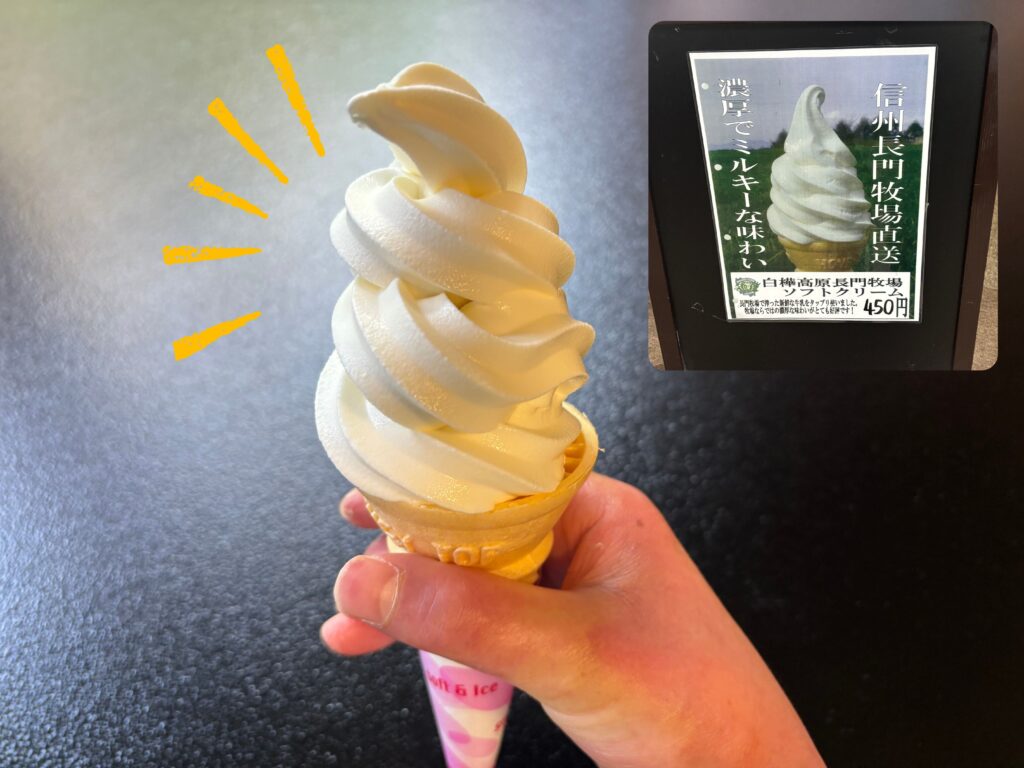 ランニングと温泉でほてった身体に、甘くてミルキーなソフトクリームが染みわたります。