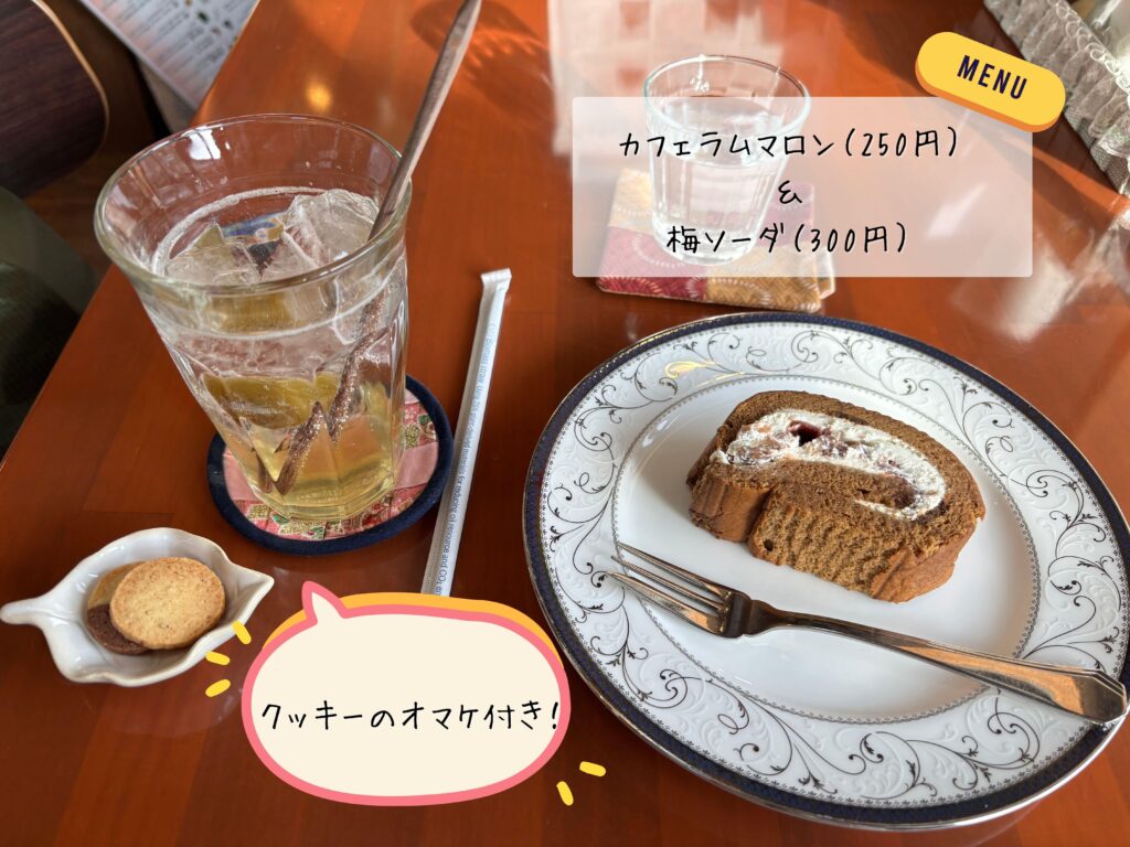筆者が訪れた際には、カフェラムマロン(¥250)と梅ソーダ(¥300)をいただきました。