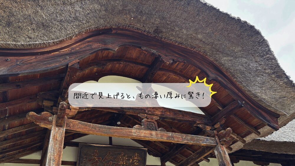 平成15年に修復工事を行った際、建立当時の建築様式に改めた常楽寺の本堂は、どっしりとした風格ある茅葺き屋根。