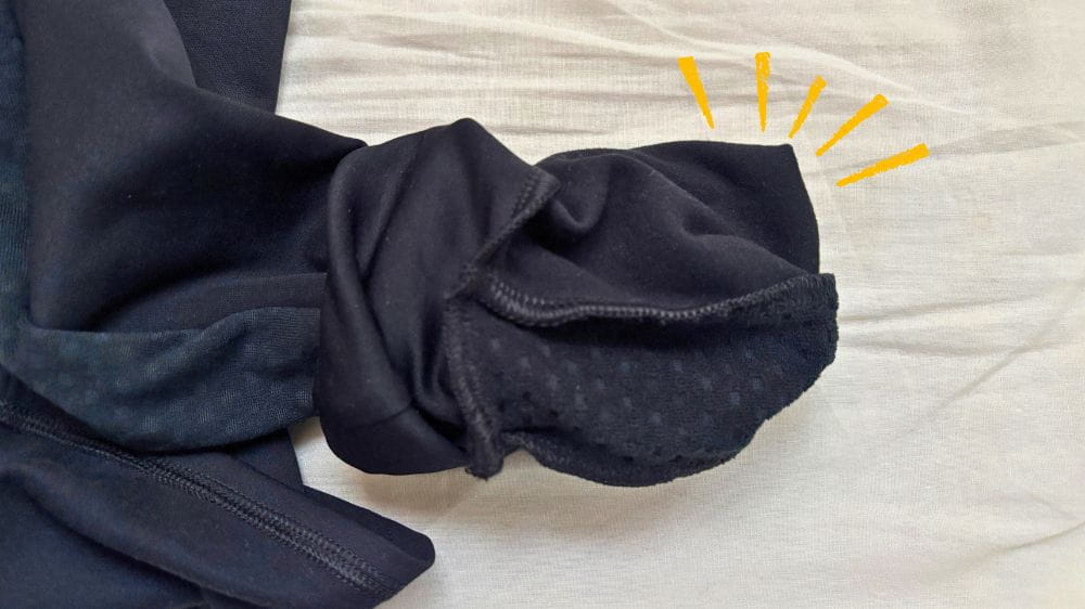「Mizuno ウォーマライトハーフジップシャツ」は手首まで覆えるサムホール設計で、手を覆う部分は特に生地感がしっかりしています。
