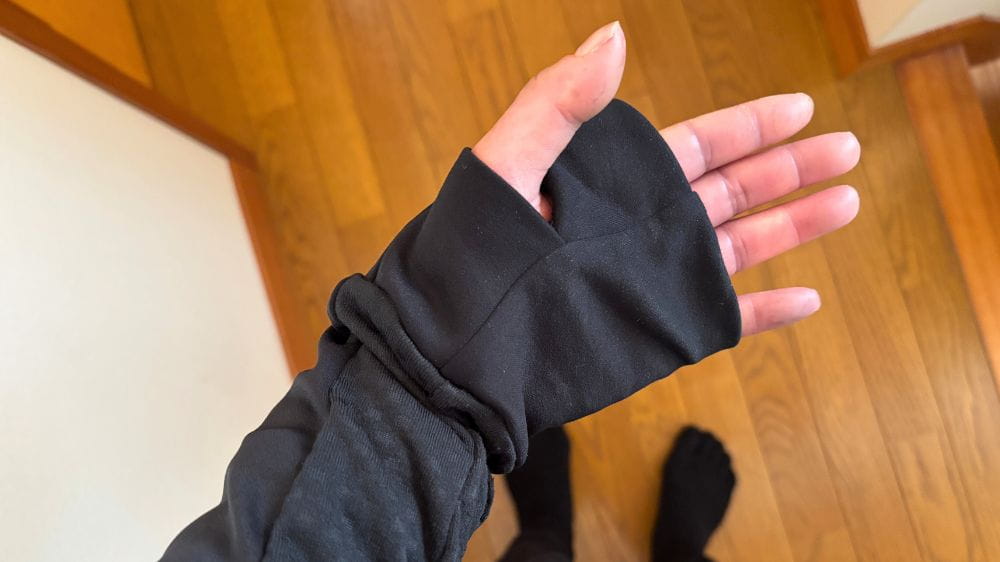 サムホール設計の袖口は手の甲まで覆えてとっても便利!なのですが…