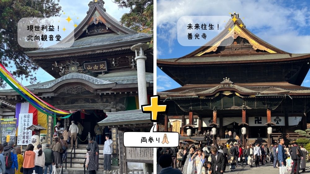 ちなみに、善光寺と上田市別所温泉の北向観音堂は向かい合っていて、それぞれ未来往生と現世利益を願っているぞ