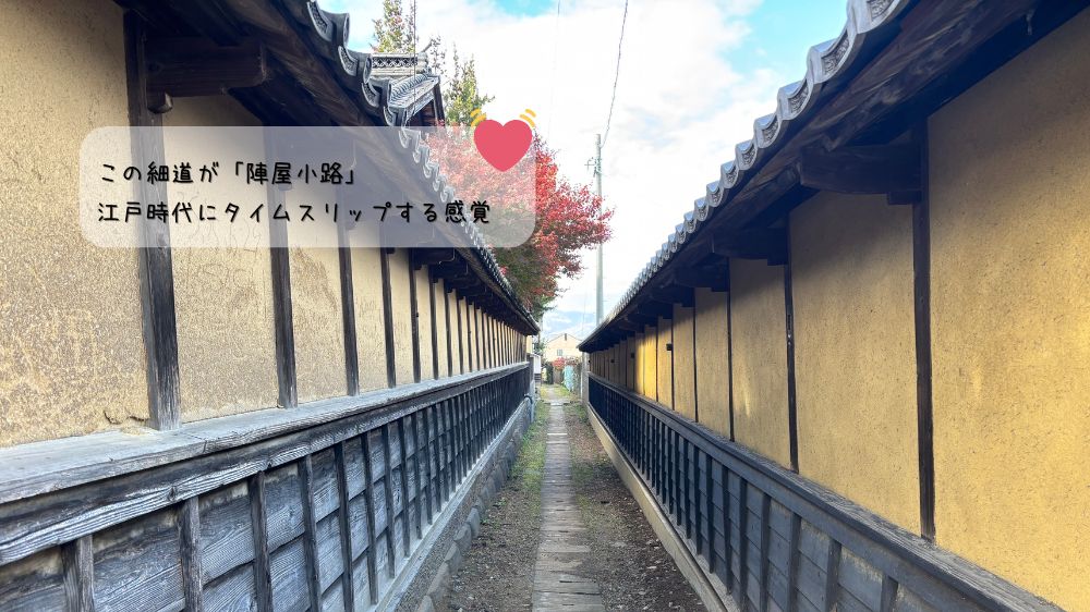 細い陣屋小路を歩けば、まるでタイムスリップしたような感覚になれますよ。
