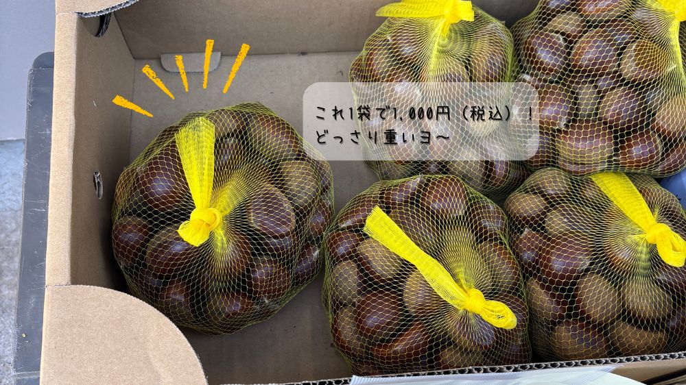 そのおかげかLサイズの小布施生栗が1kg1,000円と破格なお値段で店頭販売されていたので、迷わず購入しました。